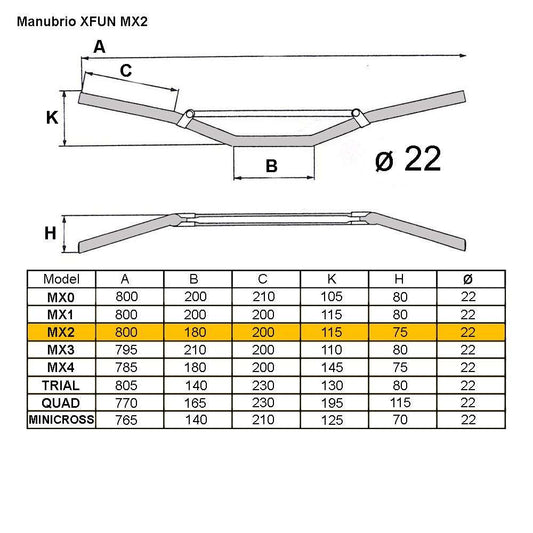 MANUBRIO MX2 Ø22 CON TRAVERSINO PIEGA MEDIA