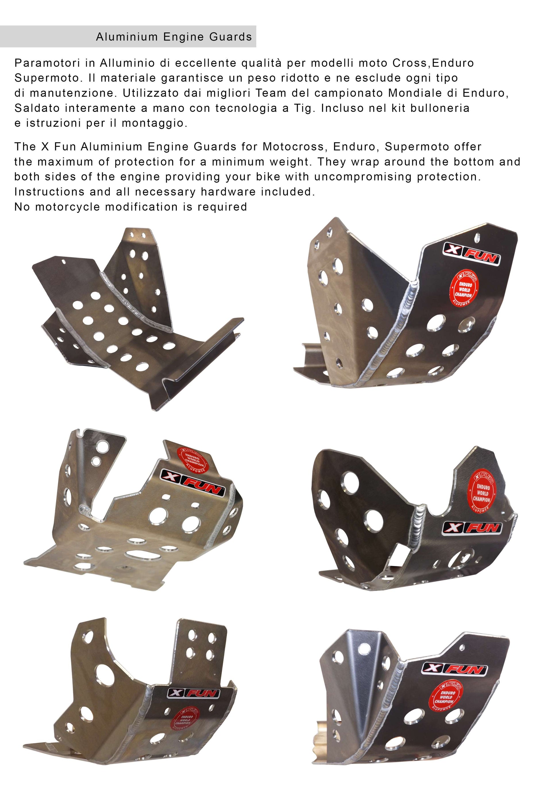 Utilizzato dai migliori team nel campionato mondiale di Enduro, il paramotore XFUN è saldato interamente a mano con tecnologia TIG per garantire una solidità e una durata senza compromessi. Ogni dettaglio è stato pensato per assicurare la massima sicurezza e protezione al tuo motore