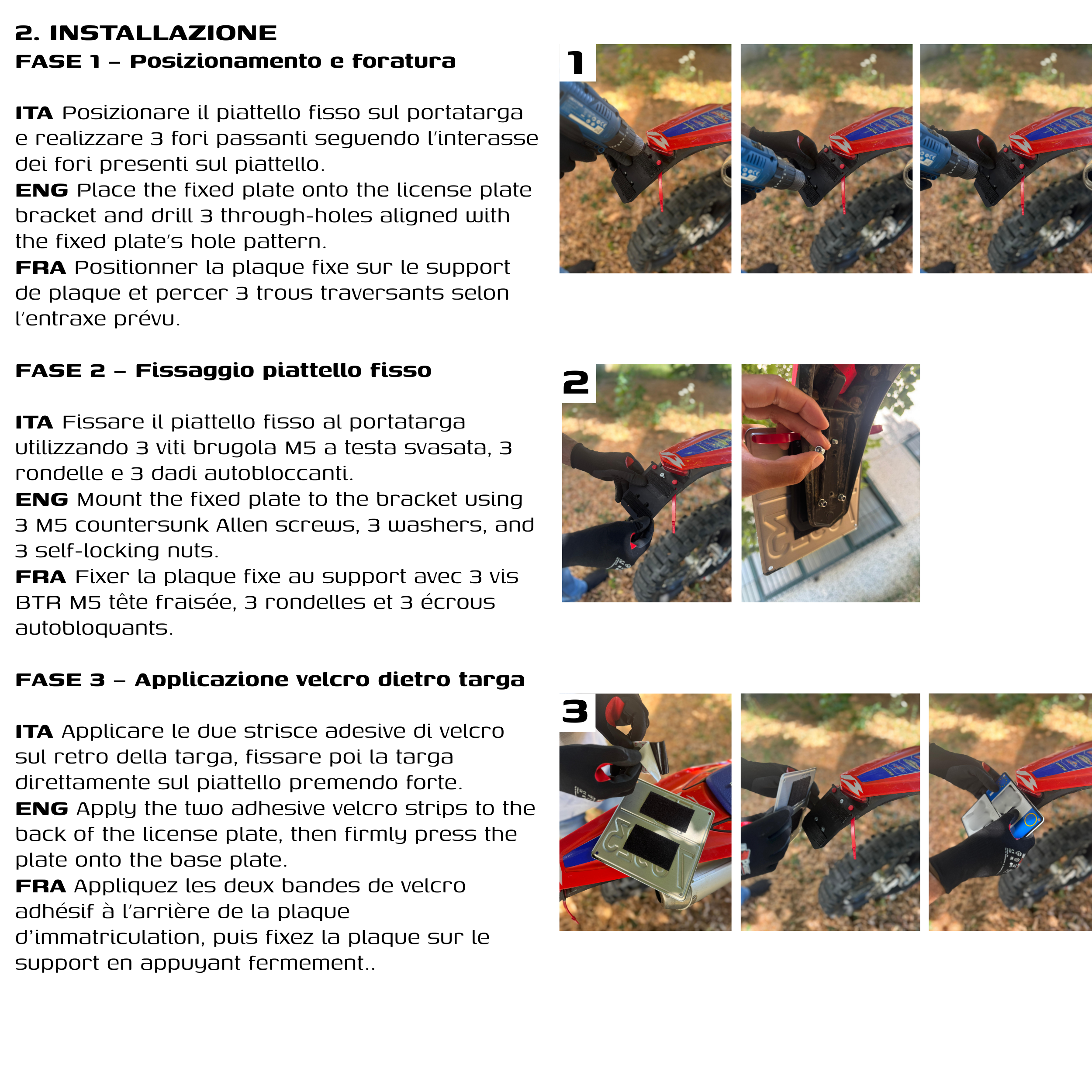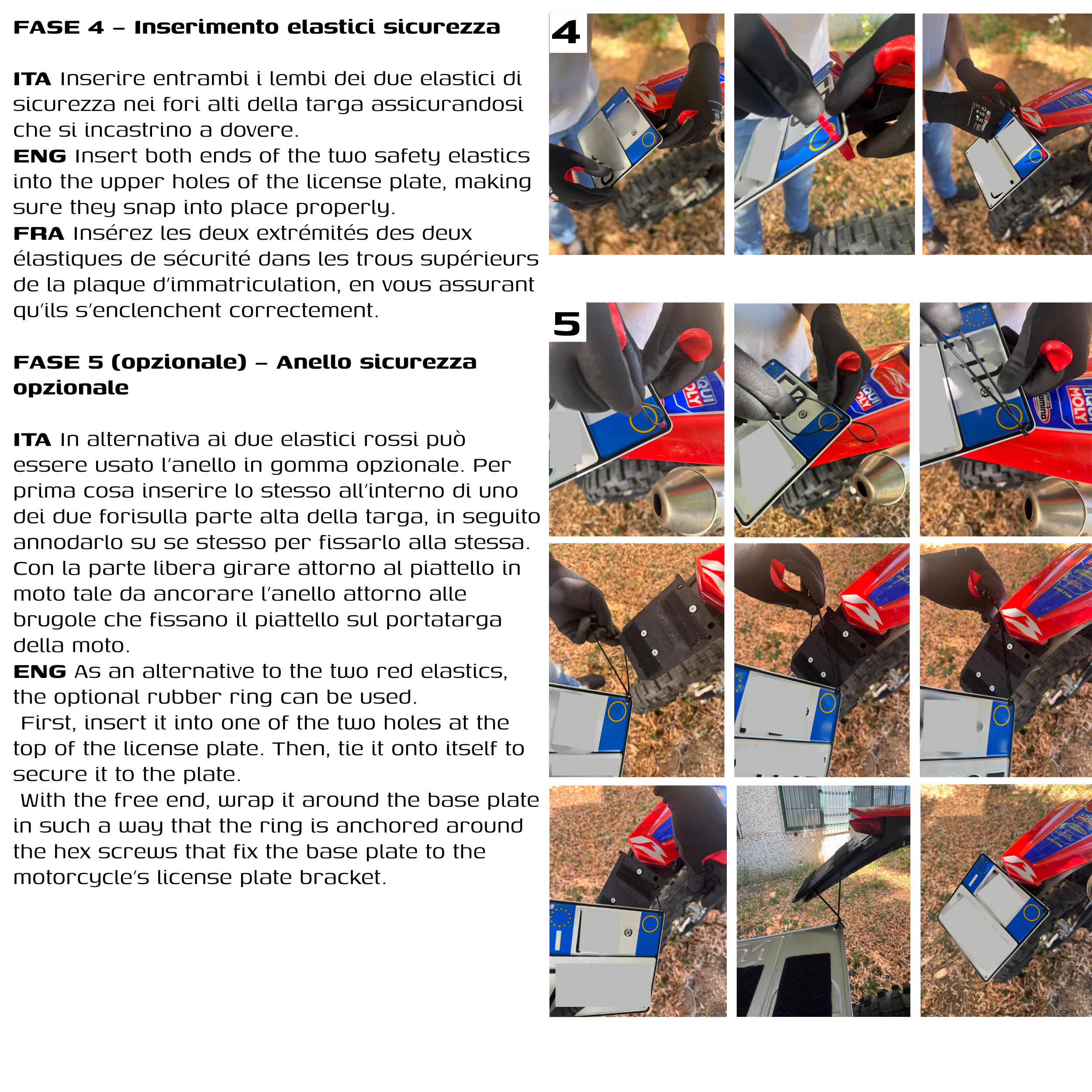 Grazie al cinturino di sicurezza integrato, la targa resta sempre al suo posto anche nelle condizioni più estreme. Perfetto per chi vuole rimuovere la targa rapidamente tra una sessione e l’altra, senza attrezzi e senza stress.
